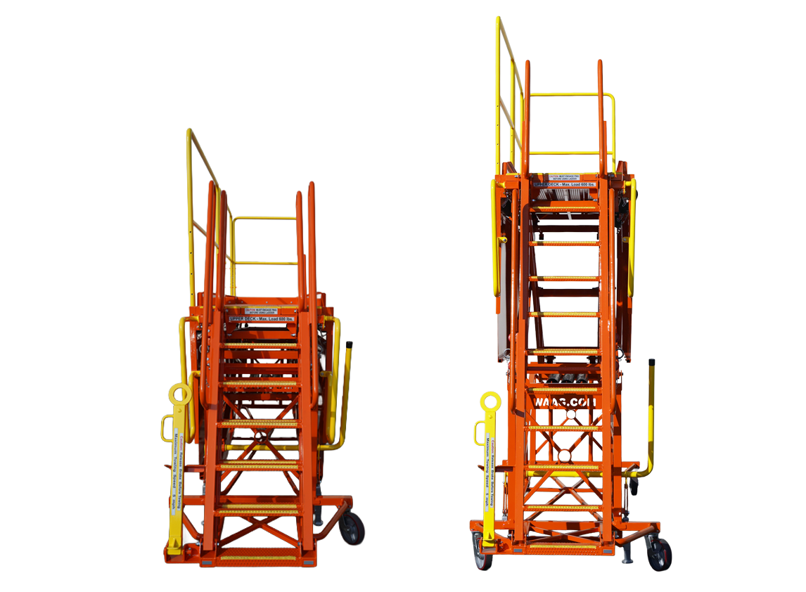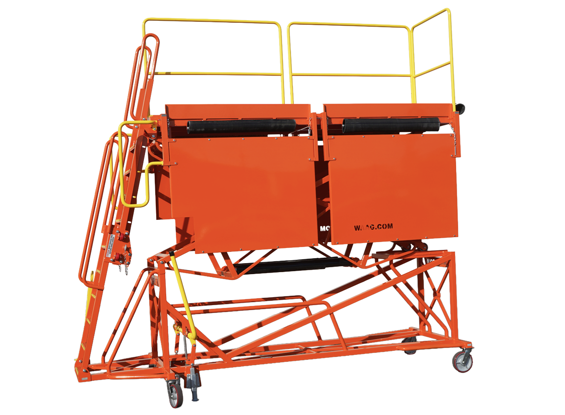 Adjustable Deck: Rises and lowers effortlessly from 62″ to 91″ high, without the use of hydraulics. Adjusts in 5.25″ increments, with safety locking pins