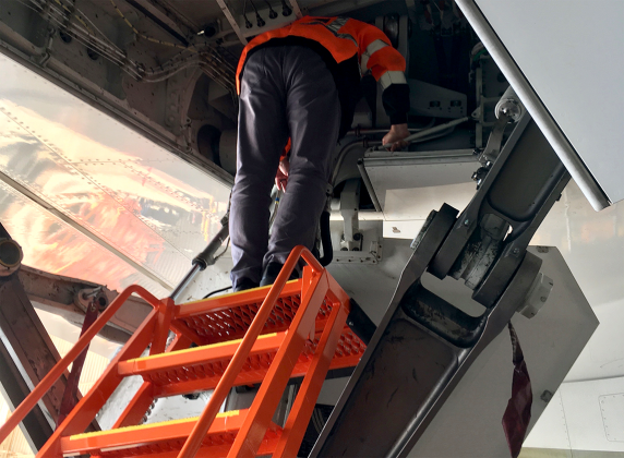 - Special padded handrails for aircraft protection against handrail while using the stand at an opposite direction.