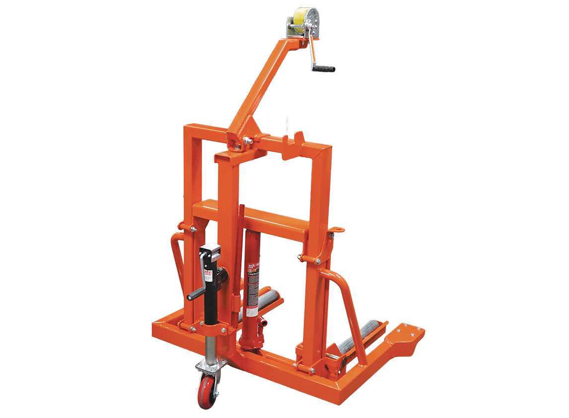 Boom with Winch: High-lift boom winch to remove aircraft brakes from boxes.